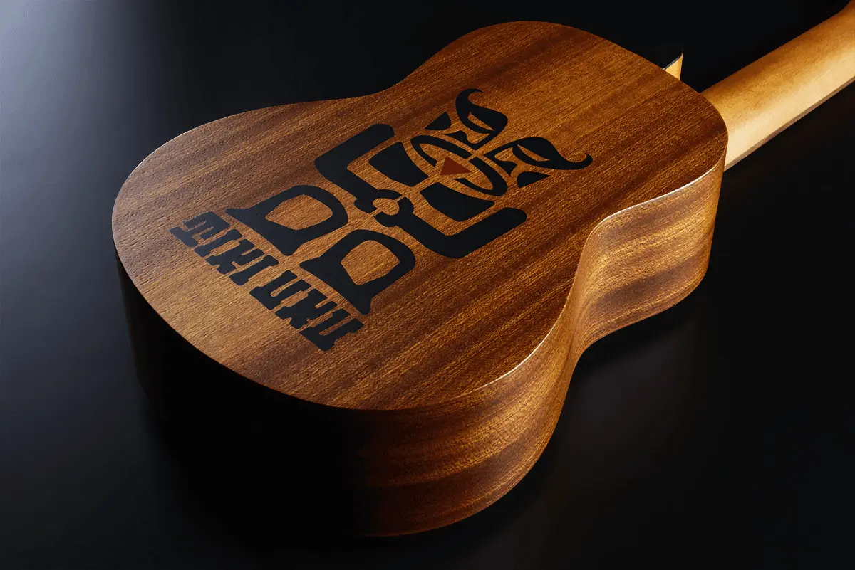 A walnut bridge and fingerboard ensure smooth playability, while the graphite nut and saddle enhance tuning precision. The die-cast tuners provide excellent stability, and the satin natural finish highlights the wood’s natural beauty. The arched back features the Tiki Uku logo, adding a distinctive touch.