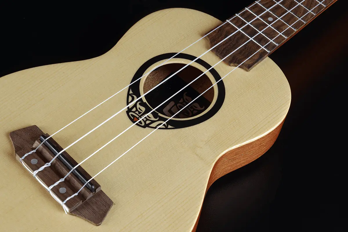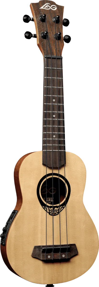 Baby soprano ukulele, with a slim body, these ukuleles benefit from a solid spruce top. These arched back ukes feature a Shadow preamp and tuner, a natural satin finish that highlights the grain of the wood and come complete with a padded gigbag.