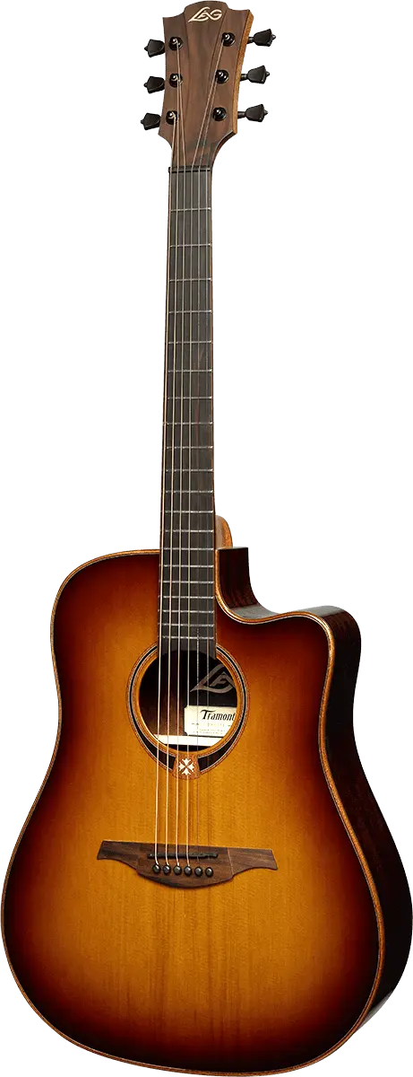 The T118DCE-BRS showcases Lag's commitment to quality, from the black graphite nut, saddle, and bridge pins that complement the black die-cast machine heads, to the BrankoWood headstock, bridge, and fingerboard. The quarter-round body bindings add to the charm and also enhance the playing comfort, making the T118DCE-BRS a pleasure to play for musicians of all levels.
