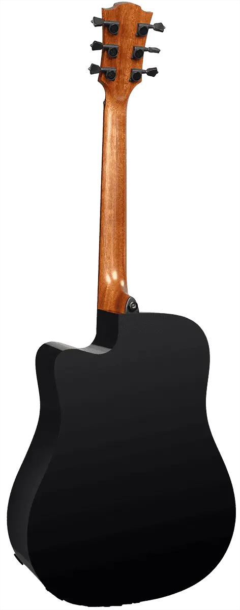 This model showcases the exquisite details that make Lag Guitars stand out. From the black graphite nut, saddle, and bridge pins that match the black die-cast machine heads, to the BrankoWood headstock, bridge, and fingerboard, every aspect of the T118DCE-BLK is thoughtfully designed. Its quarter-round body bindings not only add visual appeal but also make the guitar incredibly comfortable to play.
