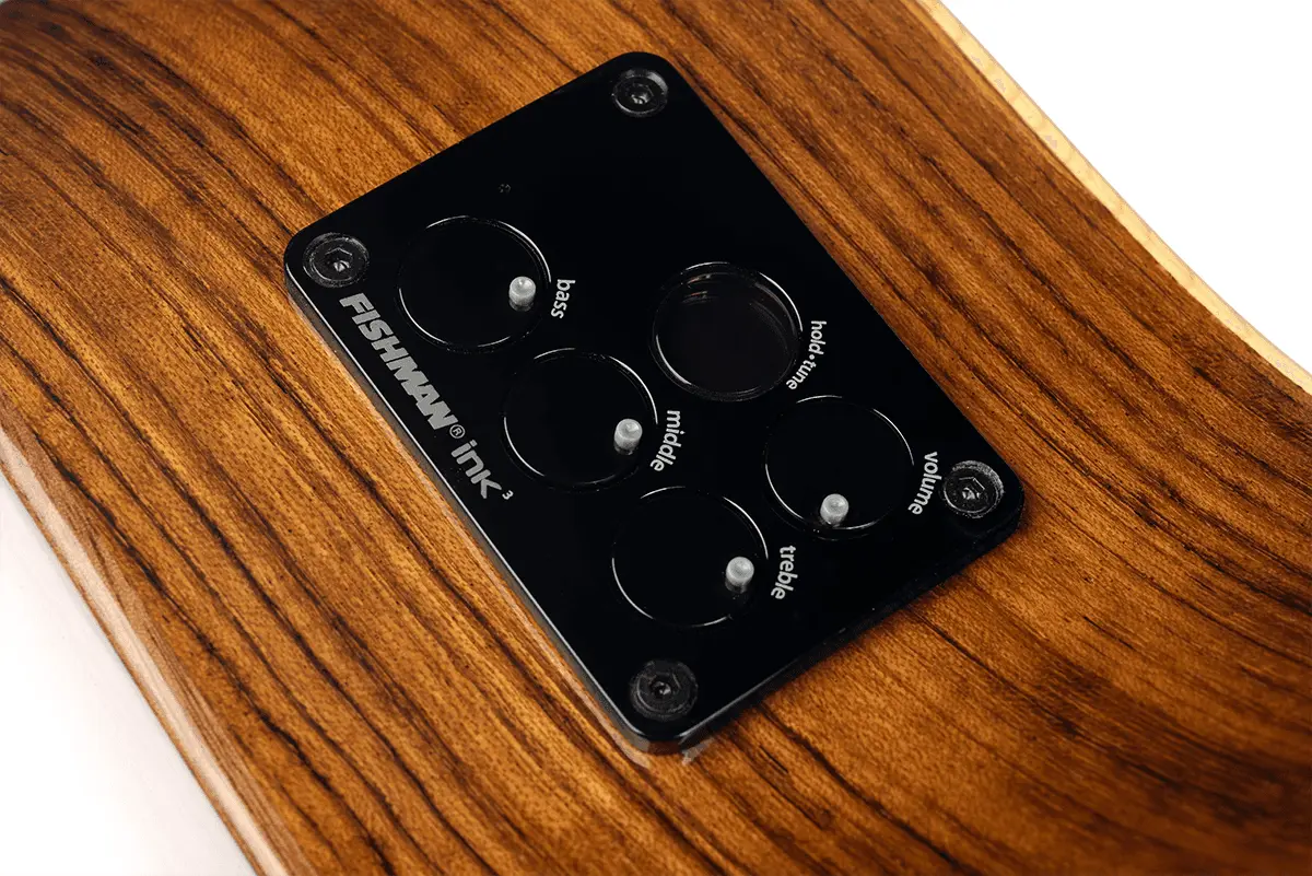 The Lâg T318ACE incorporates the Fishman Ink3 preamp system, providing excellent amplification and control. Unique design elements, such as BrankoWood on the headstock, bridge, and fingerboard, and the oval rosette, add to the guitar's charm and identity.