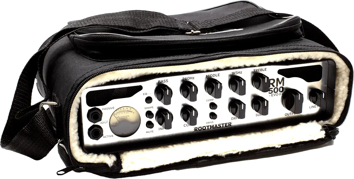 The RM-Gig Bag is the perfect case made to fit the NEW Ashdown Rootmaster EVO II heads including legacy models of the RM range. The Case is fleece lined to avoid damage to your NEW bass amp. There is a handy zip pocket on the front of the bag large enough to fit the mains lead and a speaker cable.