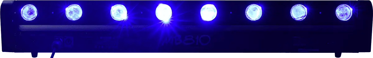 The MB810 is a motorised LED bar offering 8 powerful and independently controllable 10-watt RGBW LEDs with a 2.5° beam angle for the most colourful and captivating effects. Its 22 internal programmes allow for a wide range of effects from sweep to chase to strobe. Its quiet, high-energy motorisation allows tilt movements up to 265 degrees with fantastic responsiveness. The MB810 can operate in music-controlled, automatic or DMX mode, with 9 or 38 control channels available.
