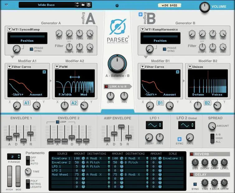 Boasting a state-of-the-art synthesis engine and an inviting user interface, Parsec was designed for the novice and the PhD of sound synthesis alike. The comprehensive sound bank with patches spanning everything from crisp, digital sounding leads to lush and evolving pad sounds, rich sonic textures and instrument sounds, will make an excellent starting point to explore the sounds of Parsec. Once you are ready to dive further, the easy to grasp interface will have you creating your own otherworldly sounds in no time.