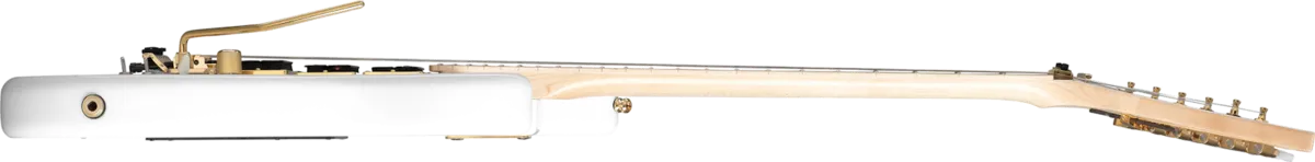 The new Kramer Jersey Star is powered by legendary Seymour Duncan® humbuckers with an SH-4 JN/JazzNeck™ in the neck position and an SH-4 JB™ in the middle and bridge positions, a favorite of the best metal players for over 40 years. Developed in 1974, the JN™ offers a classic warm humbucker tone for full yet crystal clear rhythm while the SH-4 JB™ is Seymour Duncan’s classic hot-rodded humbucker offering singing highs and aggressive harmonics. The pickup mounting rings are gold and the pickups are controlled by a single metal Volume control with 2-mini coil-splitting controls for the JN™ humbucker in the neck position and the JB™ humbucker in the bridge position.