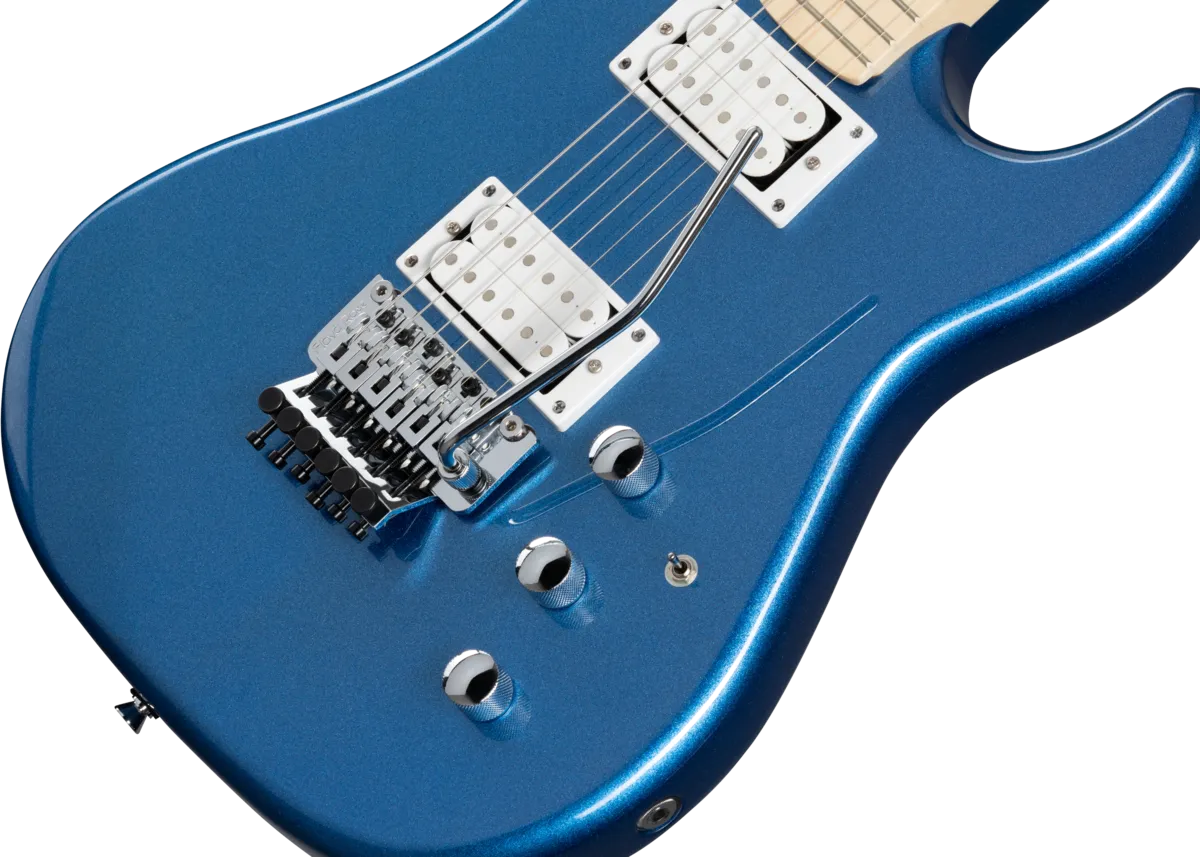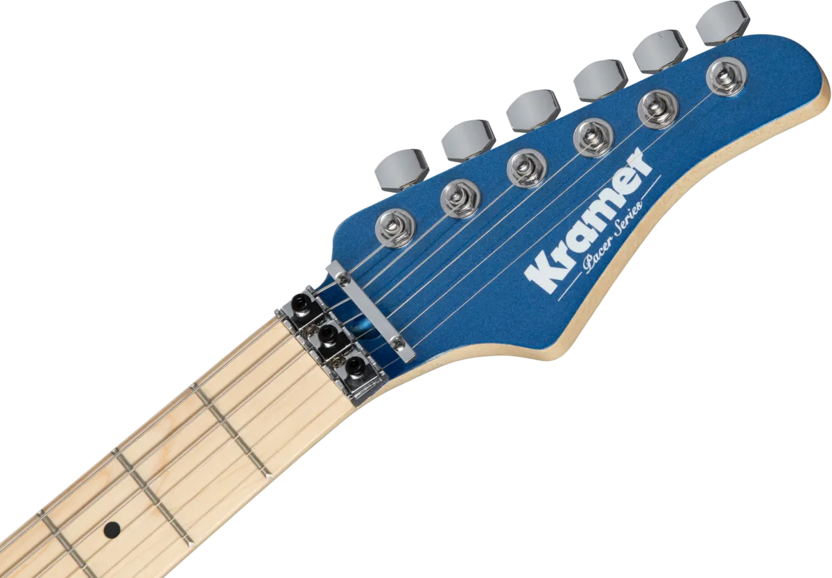 The Pacer Classic is part of Kramer's Original Collection and is a superb tribute to the original 1982 Kramer that knocked the guitar world for a loop. The Pacer Classic is built for speed, with a 25.5" scale maple neck with a Kramer K-Speed SlimTaper™ C profile and 22 medium jumbo frets. The Pacer Classic has chrome hardware, an alder double-cutaway body, a pair of double white, open-coil Alnico Classic 5 humbuckers™, and a licensed Floyd Rose® Tremolo bridge and R2 Locking Nut. Available in Radio Blue Metallic, Scarlet Red Metallic, and Purple Passion Metallic gloss finishes.