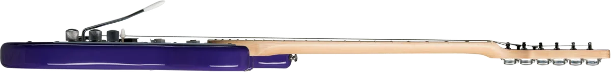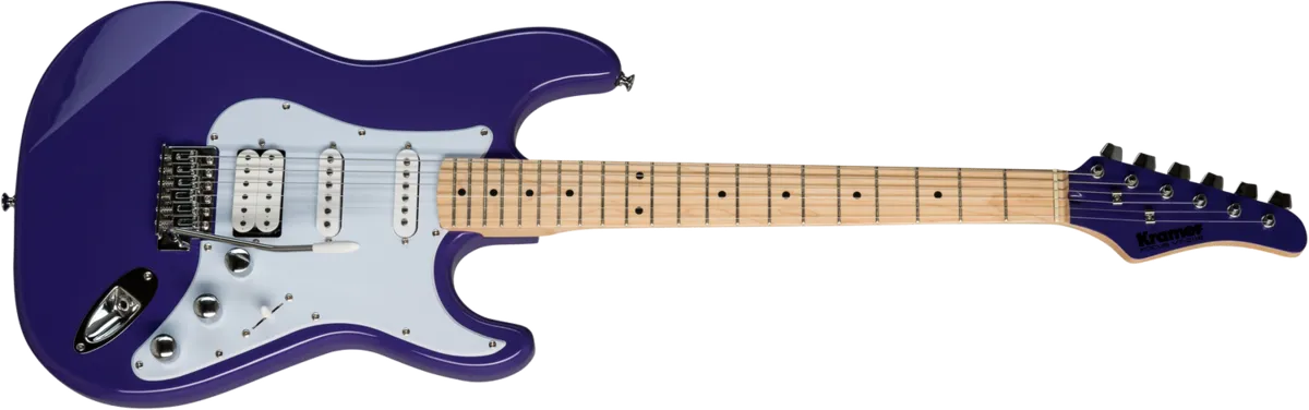 The Kramer Focus VT-211S has a classic rock and roll “S” style Mahogany body that comes in Ruby Red, Pewter Gray, Candy Blue, and Purple natural satin finishes. The bolt-on Maple neck has a Slim Profile with a Maple fingerboard with black dot inlays, a 12" radius, 25.5" scale, and 21 medium jumbo frets. The nut is a 3mm wide slot style and the traditional Kramer headstock has two string trees, a truss rod, and the legendary Kramer logo.