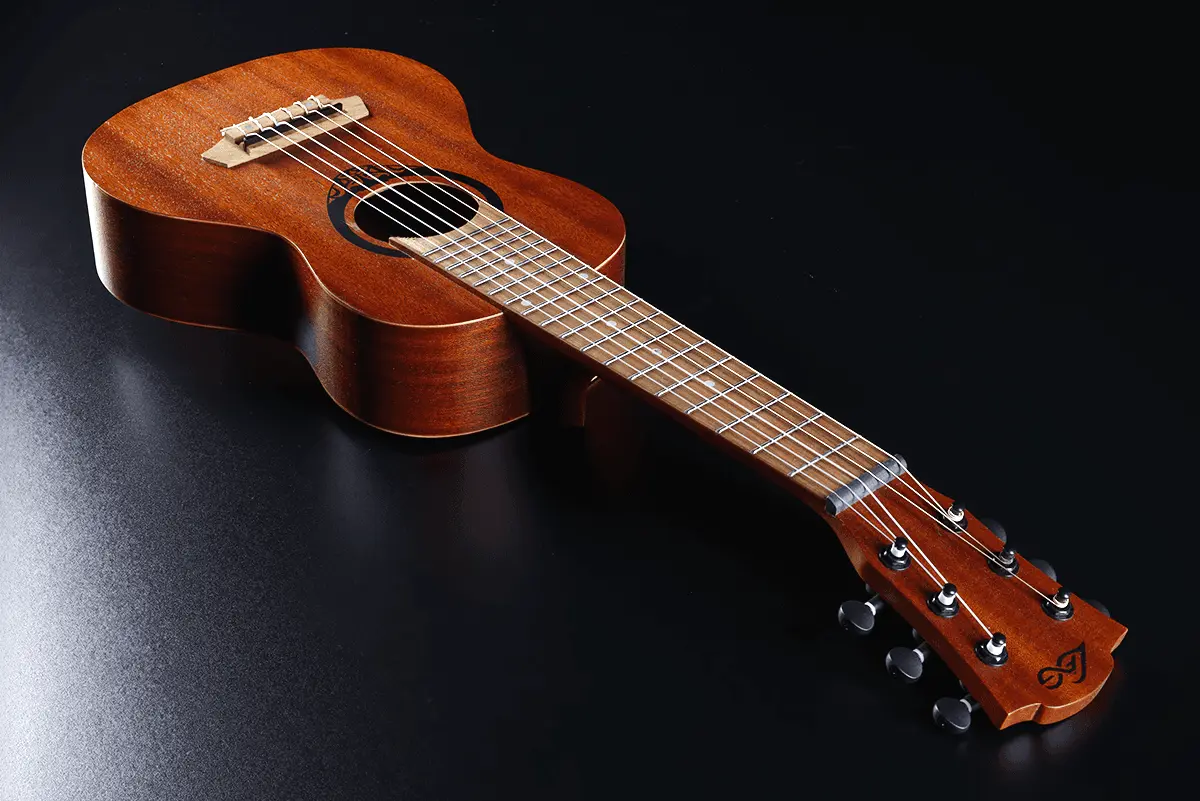 The all-sapele construction (top and body) delivers a clear, lively tone with warm resonance, perfectly adapted to its small format and higher tuning.