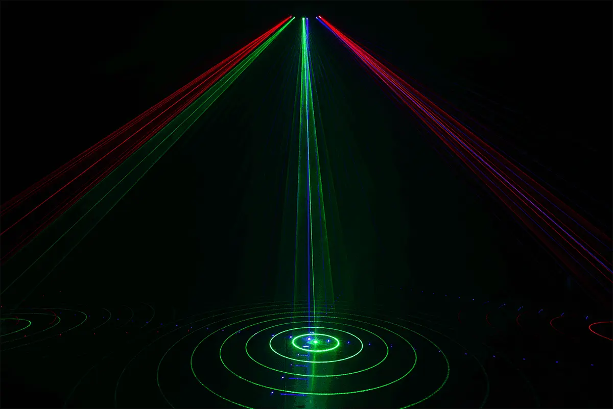 The Spectrum Six proudly features a total power of 360mW distributed over 4 motorised RGB lasers ensuring surprisingly effective effects for this category. Ideal for DJs or mobile discos, it can cover a large volume of space thanks to the power of its 6 wide angle beams. Its 4 laser light sources (2 red, 1 green and 1 blue) allow multiple colour effects to animate the dance floor during weddings, private parties, etc. Easy to use, offering many internal programmes for automatic or music-controlled operation, the Spectrum Six also offers a strobe mode. It is fully DMX controllable on 8 channels to precisely control the laser effects and their rotation speed. Finally, the Spectrum Six comes with an IR remote control for the many options available to create a multitude of stunning effects.