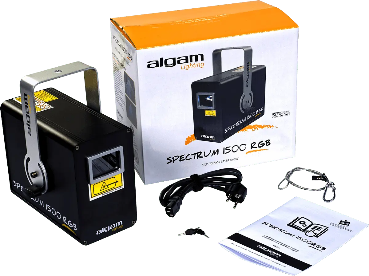 The Spectrum 1500 RGB ensures striking effects within a wide range of colours thanks to its three powerful lasers – red, green and blue. Ideal for installation in a club or for DJs and mobile discos, it can cover a large volume of space with beautiful multi-coloured layers thanks to its wide-angle scanning beams and scanner motors that ensure optimum fluidity to the dynamics of the effects. The Spectrum 1500 RGB is easy to use and offers no less than 2000 internal programmes (tunnel effects, waves, geometric patterns, graphics, etc.) for automatic or music-controlled operation. It is fully DMX controllable on 6 or 34 channels for precise control of the laser effects and their rotation speed. Finally, the laser is IDLA compatible to customise patterns for even more spectacular effects.
