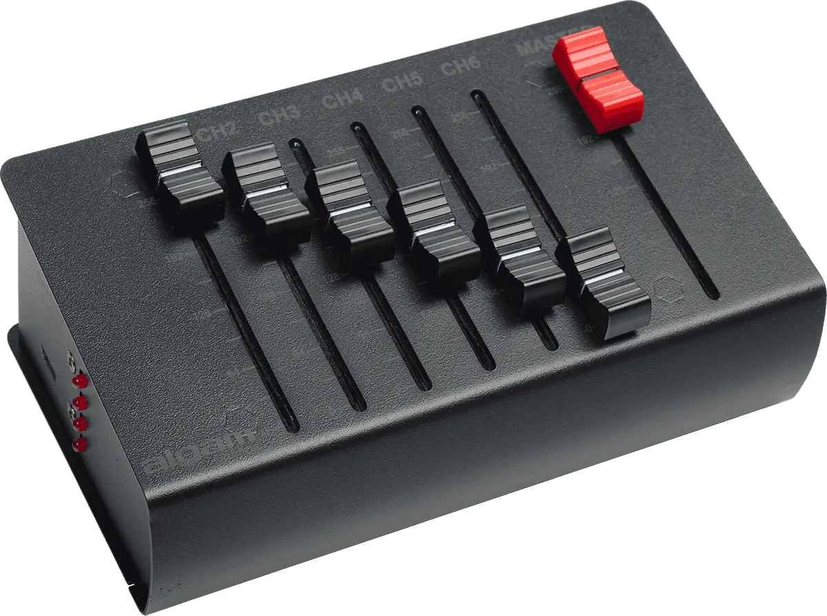 Compact, simple and practical, this 6-channel battery-powered DMX controller will totally liberate your lighting ideas.