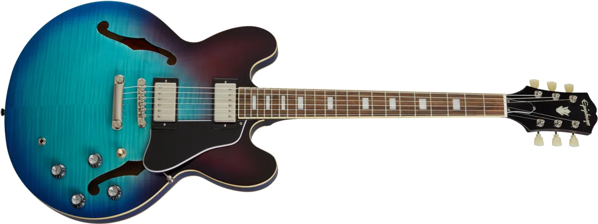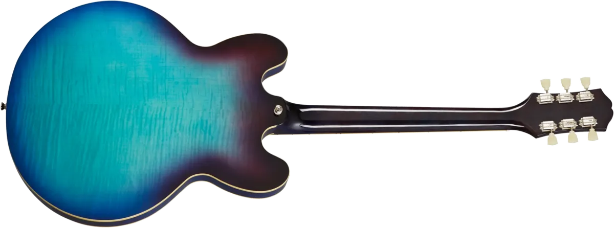 The Epiphone "Inspired by Gibson" ES-335 Figured honors the immortal ES-335, the thin semi-hollow archtop that brought archtop class to the rock era. Featuring a solid maple center block for added sustain and feedback resistance, Alnico Classic PRO™ humbuckers, Grover® Rotomatic® tuners, and a flame maple veneer top and back in stunning Blueberry Burst and Raspberry Tea Burst gloss finishes that are sure to turn heads.