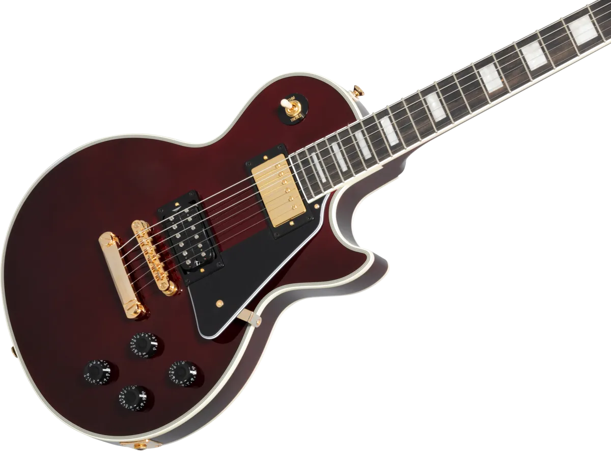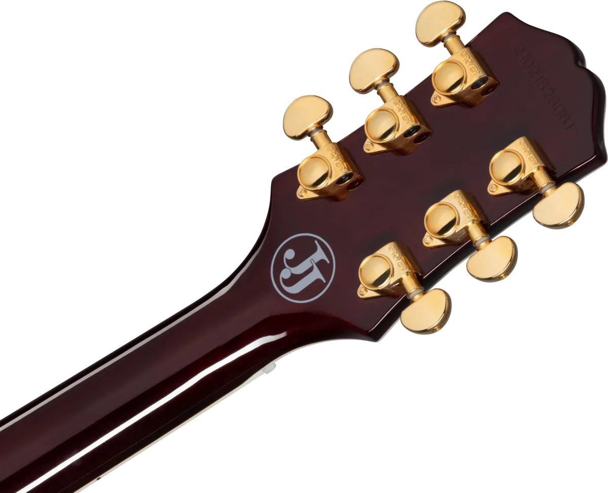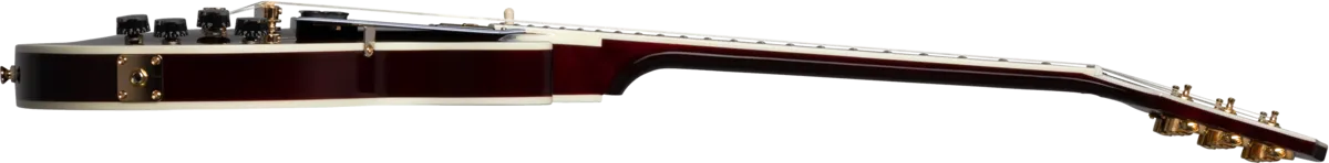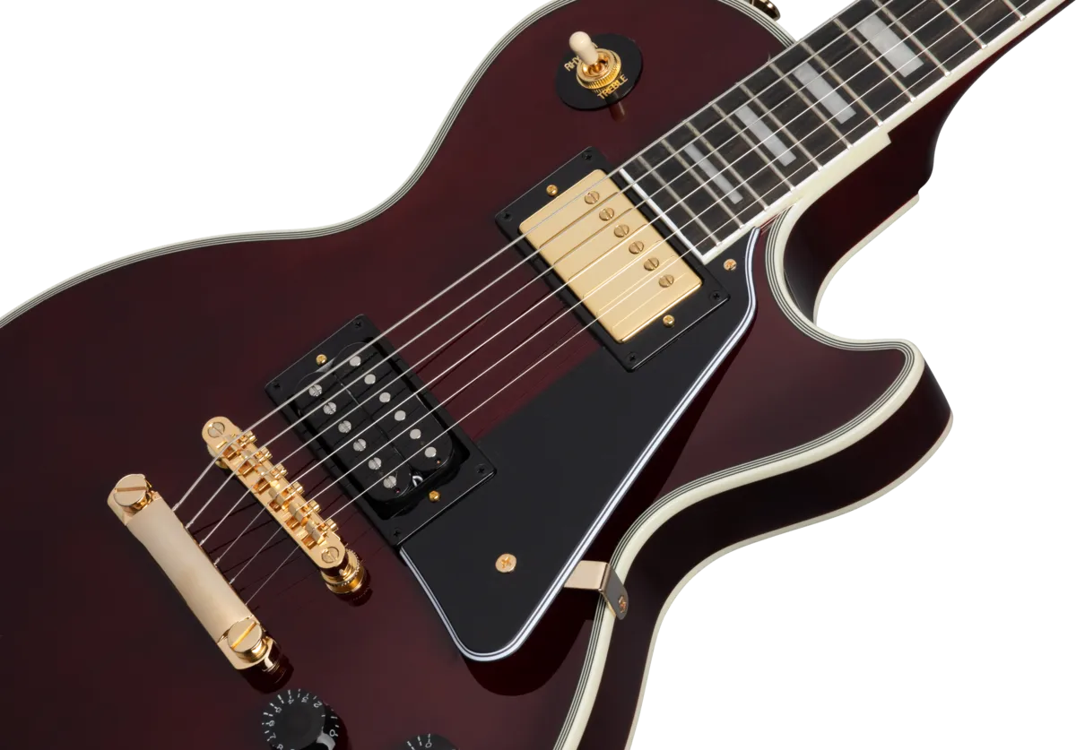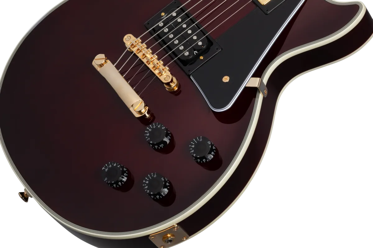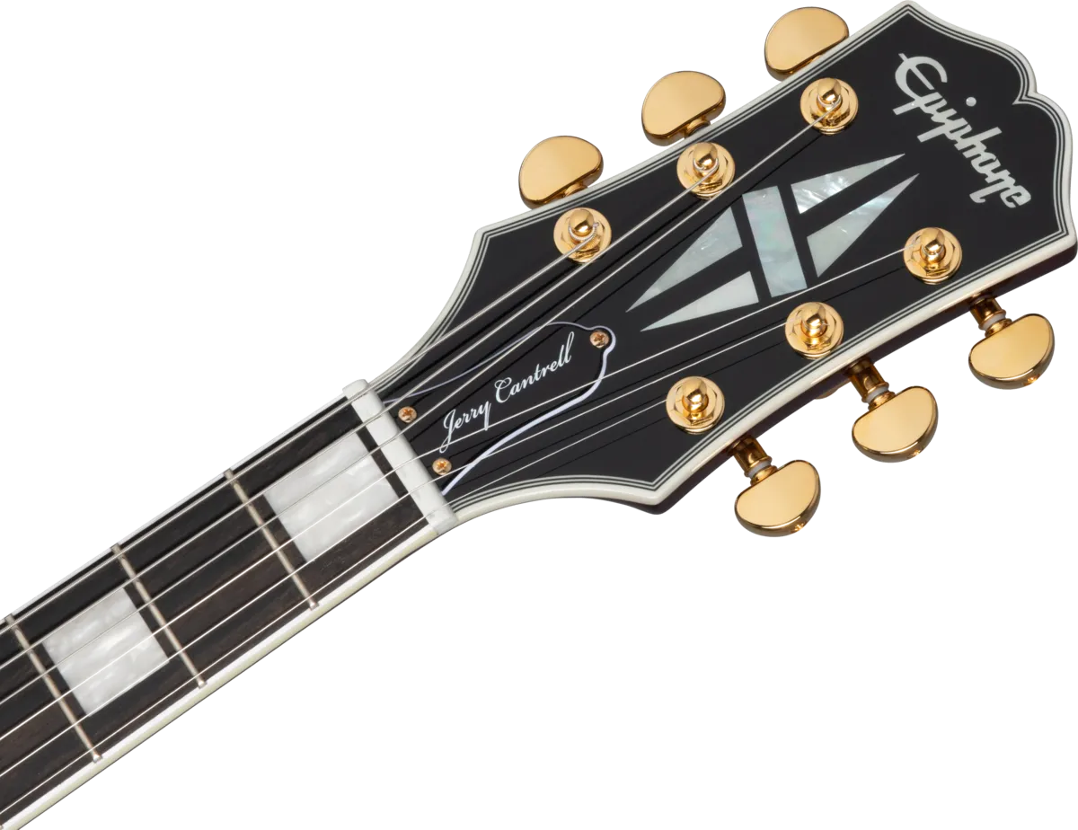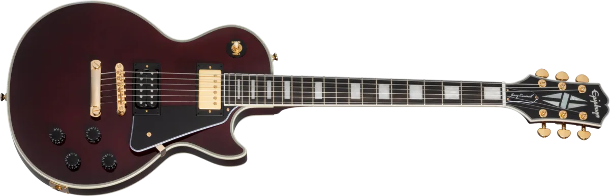 Inspired by Jerry Cantrell’s iconic Les Paul™ Custom, this guitar has many personal touches, including a Dark Wine Red finish over a plain maple top and 9-hole weight-relieved mahogany body, gold hardware, Grover® Rotomatic® Kidney tuners, an Alnico Classic PRO™ humbucker™ with a gold cover in the neck position and an exposed coil 98T PRO humbucker in the bridge position. The mahogany neck has a Cantrell custom taper, and Jerry Cantrell’s name appears on the truss rod cover in white script, while a JJ logo appears on the back of the headstock. A custom hardshell case is included.