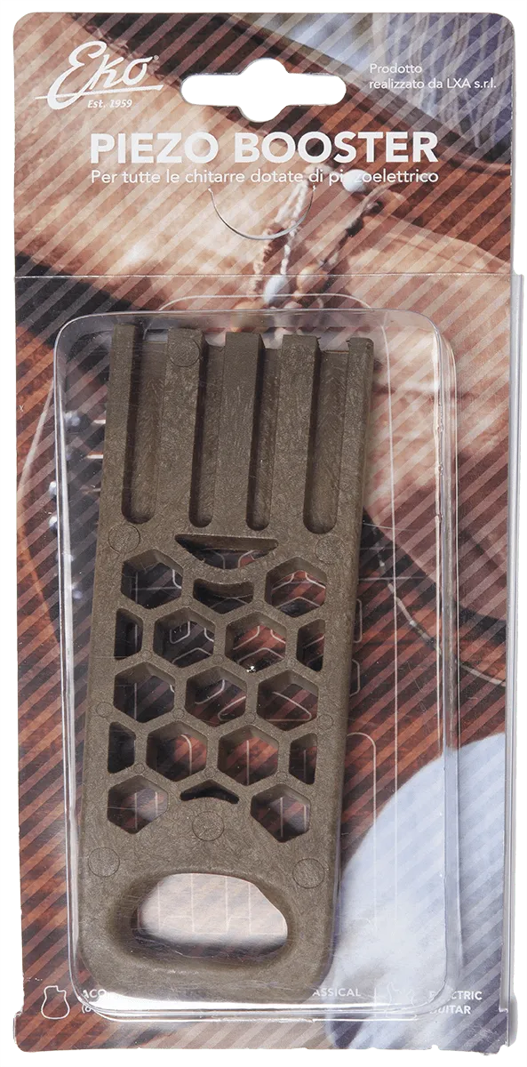 The Piezo Booster is the Eko Guitars bridge adjustment device, essential to correctly restore the bridge pressure on a piezo sensor. The result is the perfect volume balance between the strings and a dB gain on the output volume.