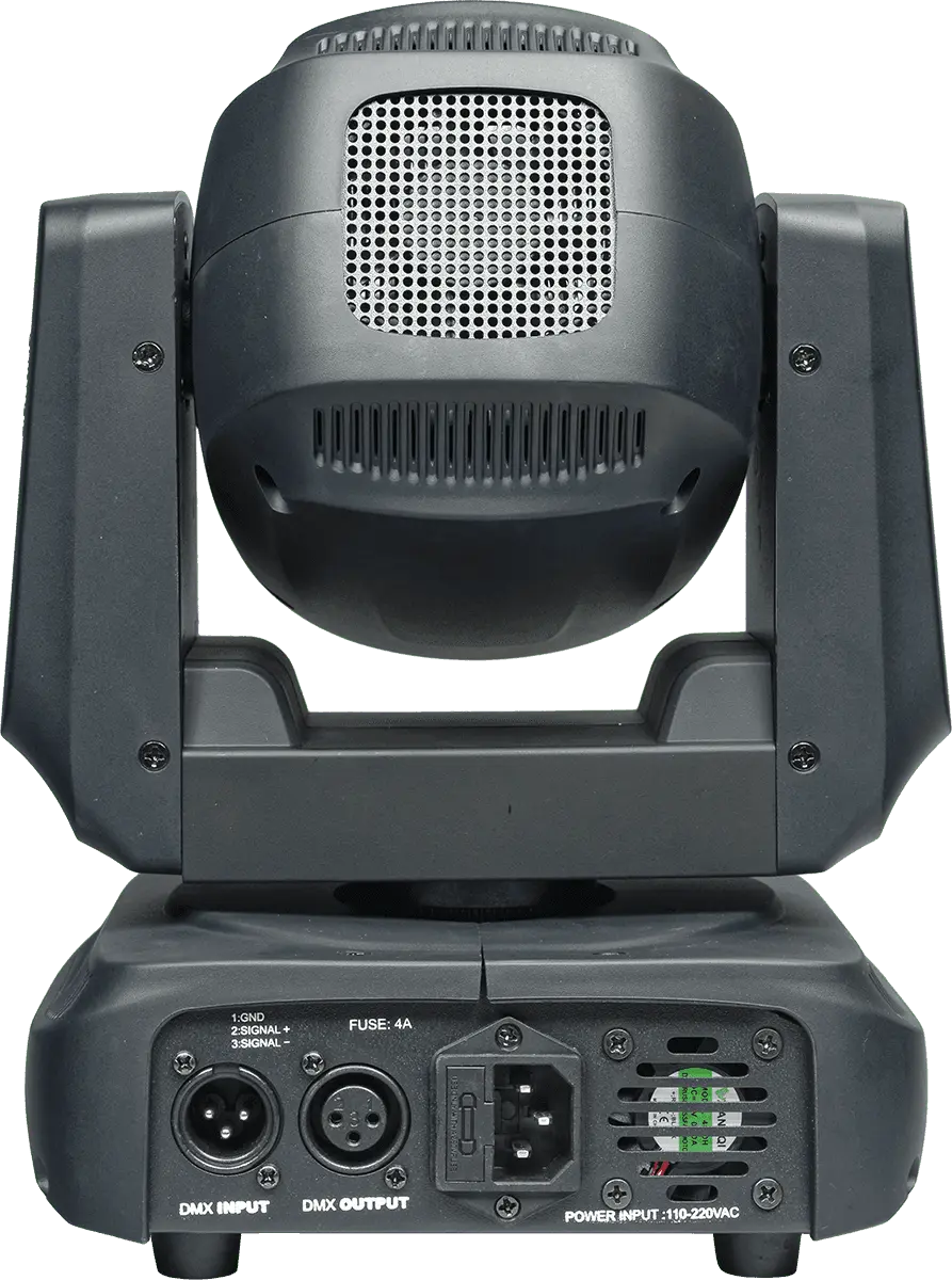 The MS60 spot moving head has a remarkably compact design and projects a powerful beam thanks to its 60W white LED. Its 8-gobo wheel coupled with an 8-colour wheel, its motorised focus and triple prism guarantee multiple and powerful light effects. With a quiet, professional-grade motor, this projector quickly and accurately pans up to 540° and tilts up to 270°. The moving head can be remotely controlled via its DMX input/output and set to automatic or music-controlled mode with its built-in control panel.