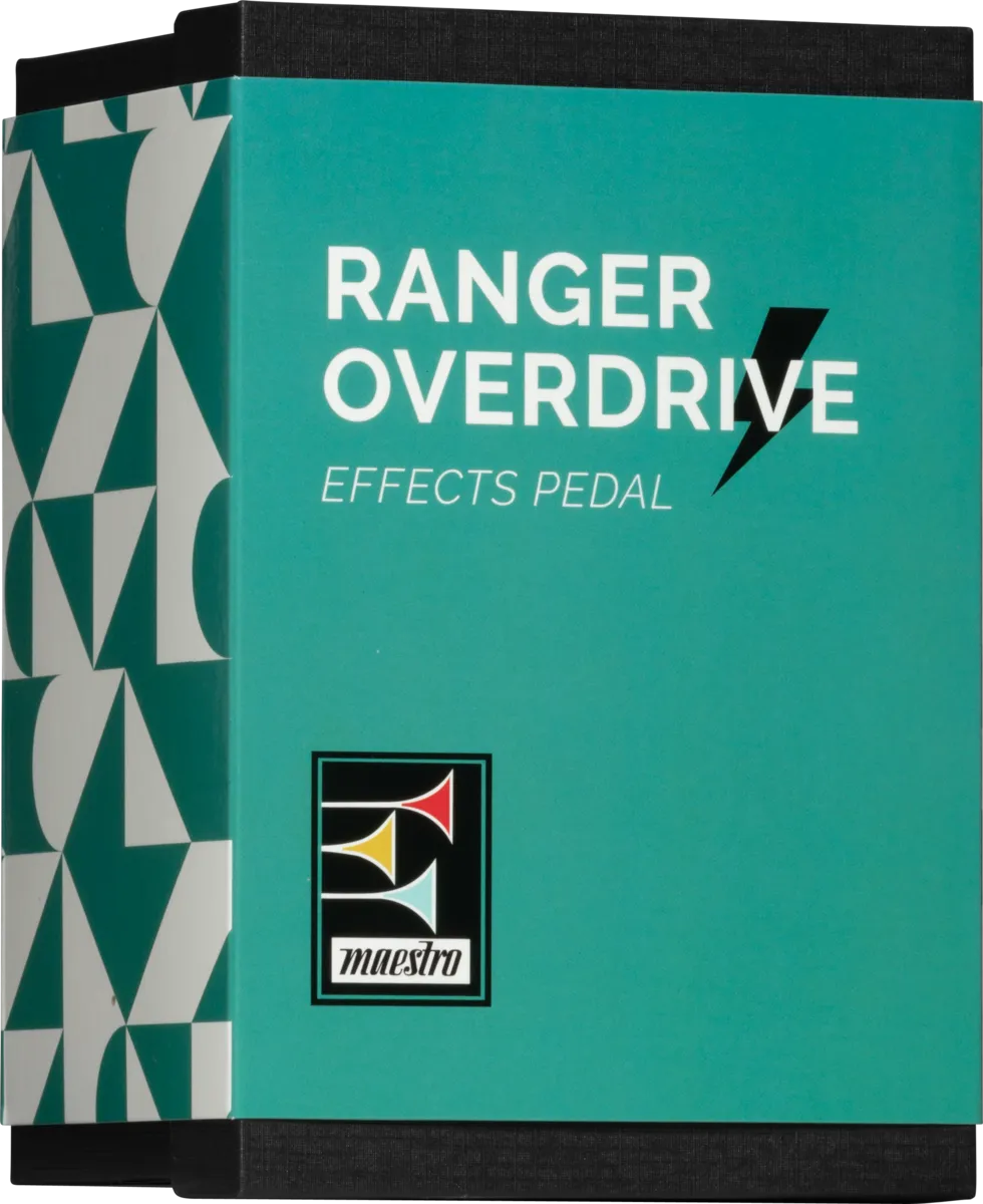 Inspired by the overdriven tones of some of the world’s most cherished vintage tube amps, the Ranger is a modern, all-analog overdrive pedal featuring a Mode toggle switch that provides two different tonalities; a warm, expressive, amp-like overdrive and a second tonality that’s slightly cleaner and exceptionally touch-sensitive; it blends in some of the clean signal and is a great choice for use as an “always on” effect that can be controlled with your pick attack and your guitar’s volume control. The Ranger’s classic 3-knob layout provides intuitive adjustment of Gain (amount of overdrive), Tone, and output Level, with plenty of volume on tap to go well beyond unity gain. You can easily use the Ranger Overdrive as a boost to hit the input of your tube amp harder for even more grit and dirt. The true bypass footswitch triggers the LED lights in the bugles in the Maestro logo when it’s on, so you’ll always know when the effect is active.