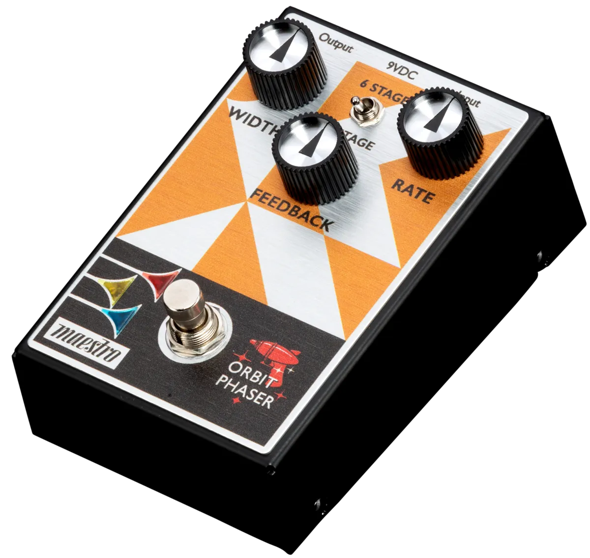 The Maestro Orbit Phaser is a descendent of the very first phaser pedal ever produced - the legendary Maestro PS-1. This classic effect has been re-engineered and tailored to the needs of today’s players. The Maestro Orbit Phaser is designed to optimize all the character and vibe you expect from an all-analog phaser. Warm and smooth, the Maestro Orbit Phaser offers all the versatility needed to dial in the tastiest of phaser effects. Its two-position Mode switch gives you a choice of 4 or 6-stage phasing. The intuitive 3-knob control layout lets you quickly set the desired Width (the intensity of the phaser effect), Feedback (emphasizing the amount of vocal phase effect), and adjust the Rate (speed) of the phasing effect. The true bypass footswitch triggers the LED lights in the bugles in the Maestro logo when it’s on, so you’ll always know when the effect is active.