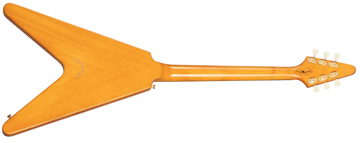 Made in partnership with the Gibson™ Custom Shop, the 1958 Korina Flying V™ is Epiphone’s impressive recreation of one of the most famous and valuable vintage guitars ever made. It brings authentic 1958 Flying V details to guitarists everywhere at a breakthrough price. Like the ultra-rare original Gibson models from 1958, it features a solid Korina body and a Korina neck with a long neck tenon and a 1958 Flying V neck profile. It is also equipped with an Indian laurel fretboard and gold hardware. The electronics are also top-notch, with Gibson Burstbucker™ 2 and Burstbucker 3 pickups wired to individual volume controls and a master tone control with CTS® pots and a Mallory™ capacitor, along with a Switchcraft® 3-way pickup selector switch and 1/4” output jack. An Epiphone x Gibson Custom logo on the back of the headstock is also proudly displayed, and a hardshell case is also included.