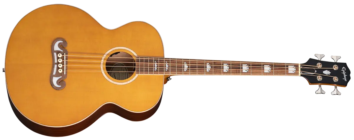 The new El Capitan J-200 Studio Bass is an outstanding choice for bassists whowant an acoustic instrument with undeniable style and great sound, whether playing acoustically or plugged in. Taking its stylistic cues from the legendary SJ-200 (the King of the Flattops), it has pearloid crown inlays on its 20-fret Indian laurel fretboard and an iconic Moustache bridge. A solid Sitka spruce top is paired with layered mahogany back and sides for great tone, and the mahogany neck's 30.5" scale length and Medium C profile ensure hours of comfortable play. It also comes equipped with a Fishman® Sonitone™ under-saddle pickup and Sonicore™ preamp, making it ready for any stage - or studio.