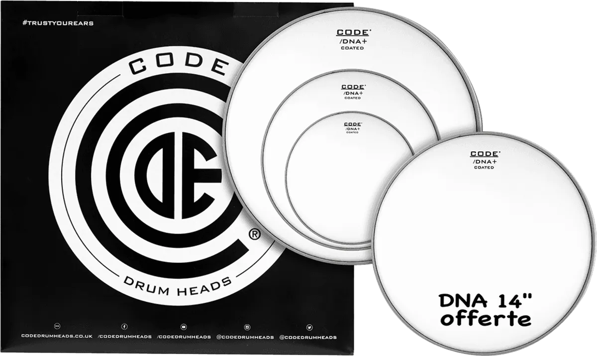 DNA Rock Pack with 10", 12", 16" coated tom heads, and one 14" coated snare head.