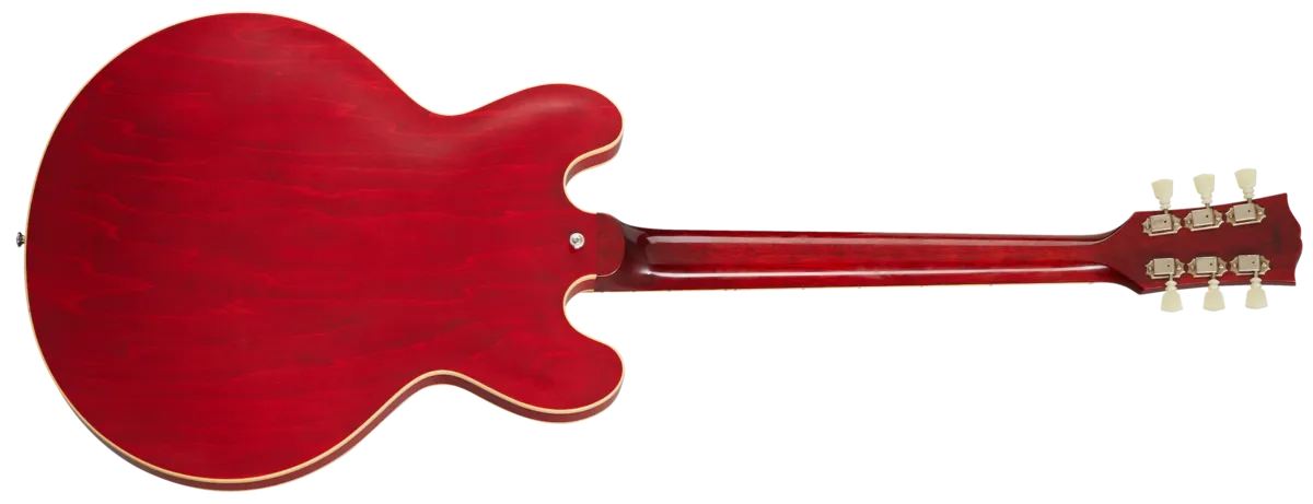 The Historic Reissue ES-335 is back and better than ever thanks to a year of studying, scanning, and listening to original examples. The expert craftspeople at Gibson Custom Shop have rendered every contour, profile, inlay and color of the priceless vintage models in magnificent detail. The result is a playing and ownership experience that will keep you coming back for more. The 1961 Reissue models utilize rounded cutaways, slim-taper neck profiles scanned from originals, dot inlays and vintage-replica parts.