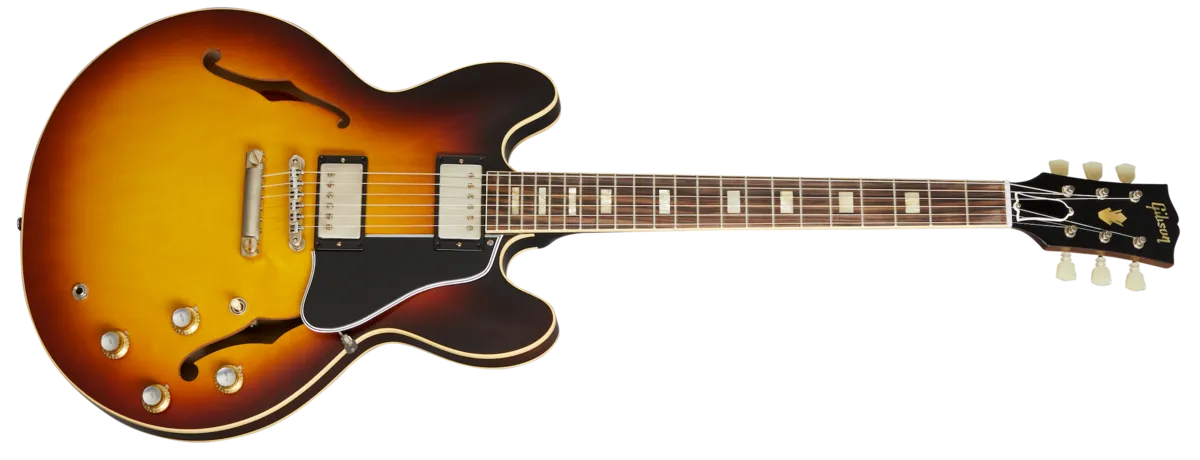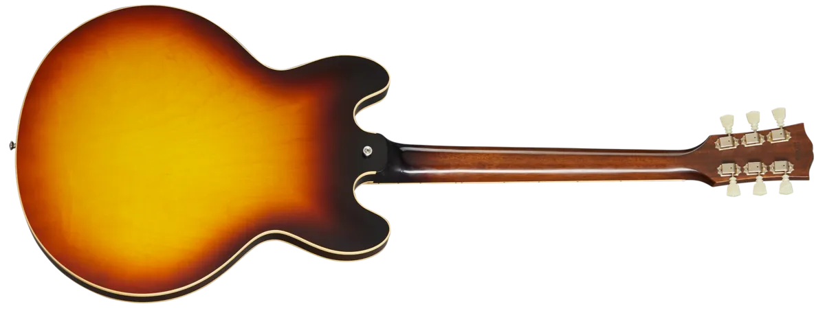 The Historic Reissue ES-335 is back and better than ever thanks to a year of studying, scanning, and listening to original examples. The expert craftspeople at Gibson Custom Shop have rendered every contour, profile, inlay and color of the priceless vintage models in magnificent detail. The result is a playing and ownership experience that will keep you coming back for more. The 1964 Reissue models utilize sharp horn cutaways, medium C-shape neck profiles scanned from originals, small block inlays and vintage-replica parts.