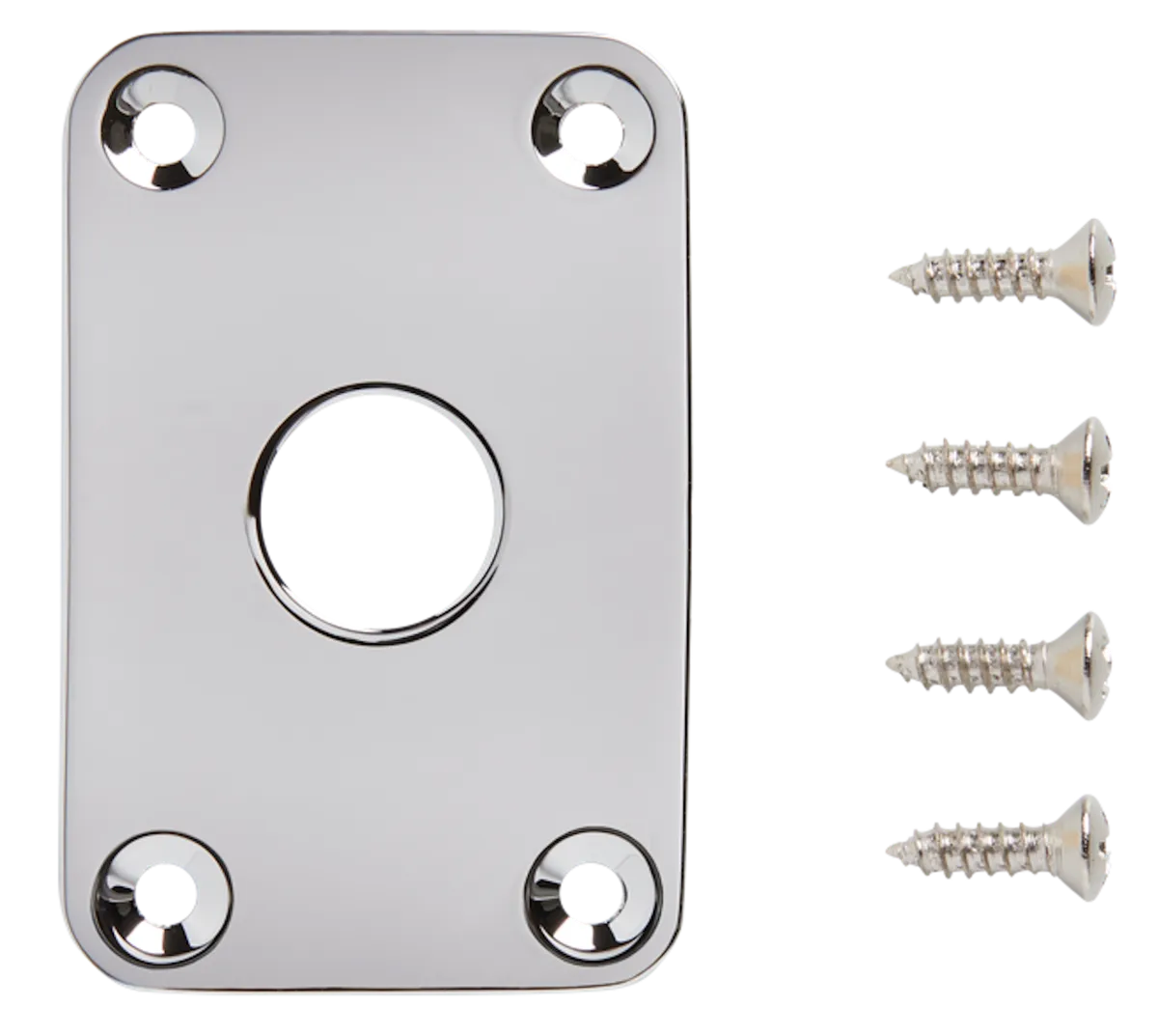 This Gibson Explorer Jack Plate in Chrome is a traditional square jack plate and genuine Gibson replacement part. It is the right size, shape, and color for replacing or upgrading existing hardware, or for custom builds.