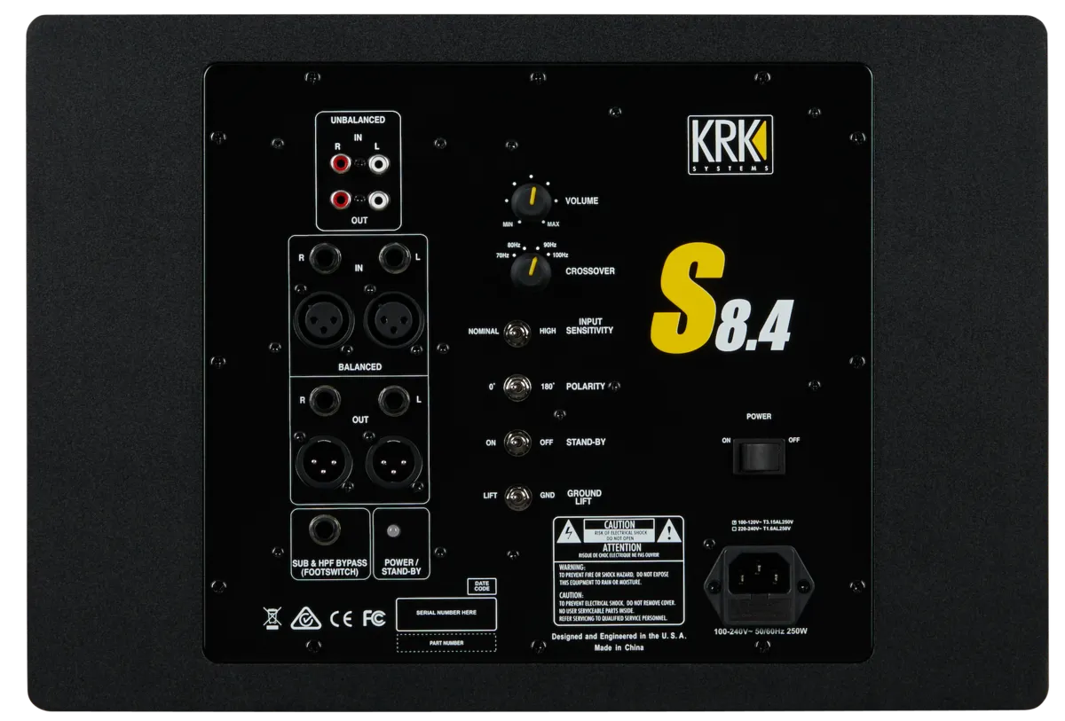 Pairing the S8.4 subwoofer with KRK or another studio monitor delivers an optimized mixing and listening experience with extended low end, while the exclusive bypass-control feature provides full range audio to the monitors without switching off the subwoofer. KRK’s S8.4 subwoofer doesn’t just deliver precise bass and a rich feature set: it’s the next dimension in subwoofer performance.