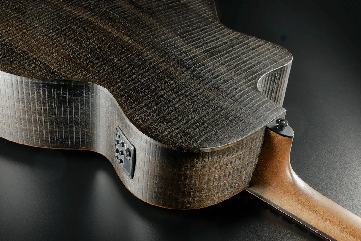 Designed with eco-friendly certified BrankoWood and an innovative eco-friendly varnishing process, the Sauvage-J12CE symbolizes a seamless blend of beauty and environmental consciousness. The tropicalization process of the BrankoWood ensures a stable wood that's resistant to humidity and temperature changes, reflecting the splendor of precious aged woods without the ecological impact.