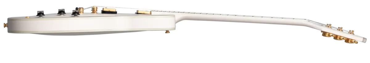 The Epiphone Emily Wolfe "White Wolfe" Sheraton is based on the triple-threat rock & roll singer, songwriter, and guitarist's popular Sheraton Stealth. Once again, Emily has lent her creativity to develop her new artist model. The Emily Wolfe "White Wolfe" Sheraton is equipped with an Indian laurel fretboard with 22 medium jumbo frets and mother of pearl block inlays with abalone lightning bolts. The headstock has a mother of pearl tree of life of inlay on the front, Emily's Wolfe logo and a white gloss Emily Wolfe signature on the rear, and is outfitted with Grover® Rotomatic® tuning machines and a Graph Tech® nut. An Epiphone LockTone™ Tune-O-Matic™ bridge and Stop Bar tailpiece hold down the other end of the strings and contribute (O the impressive sustain of the instrument. The electronics include full-sized Epiphone Alnico Classic PRO™ humbucker ™ pickups paired with CTS® potentiometers for smooth control over individual pickup volume and overall tone. It's finished in Aged Bone White paired with lightly aged gold hardware. An EpiLite™A case is included.