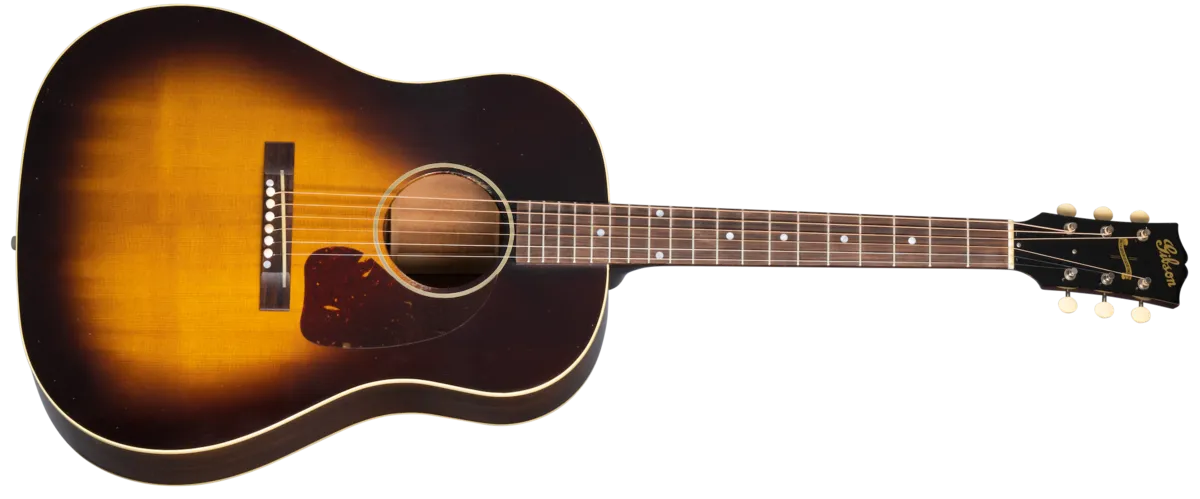 The allure and legend of the Gibson J-45™ live on in the new Murphy Lab 1942 Banner J-45. Inspired by the holy grail of vintage acoustic instruments, luthiers in Montana meticulously crafted a J-45 just like the most popular and celebrated version in structure and components. The new 1942 Banner J-45 includes a Thermally Aged Adirondack red spruce top hand-sprayed with a historic-style burst, hot hide glue top bracing for better tonal response, and a bone nut and saddle. It features Light Aging by the skilled artisans of the Murphy Lab. The Murphy Lab Light Aged finish treatment, paired with lightly aged hardware, simulates decades of light play wear, giving it the unique character, vibe, and feel of an original example from the Gibson Golden Era.