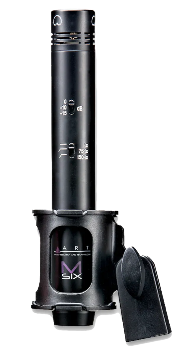 An ultra compact proprietary shockmount ensures maximum isolation while holding the M-Six securely over the source. The rugged flat-black powder coat finish guarantees the ART M-Six keeps a low profile when used in live and broadcast applications.