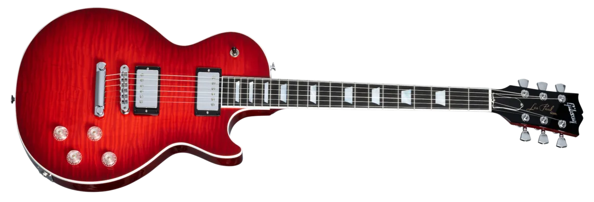 The new Gibson Les Paul™ Modern Figured incorporates many contemporary updates players have embraced, such as a lighter-weight mahogany body with a figured AAA maple top and a comfortable, fast-playing Slim Taper™ neck profile. The Modern fingerboard is crafted with genuine ebony and has a compound radius for lower and cleaner action. The neck/body joint features the Modern Contoured Heel for effortless access to the highest frets and maximum sustain and stability. Hardware upgrades include Grover® locking Rotomatic® tuners, clear Top Hat knobs, and Burstbucker Pro ™ and Burstbucker Pro + pickups. The control assembly features four push-pull pots to switch between Gibson humbucker™ and single coil P-90 sounds, both of which have defined so genres of music across multiple generations since we invented them, along with phase switching and pure bypass for additional sonic variety. The new Gibson Les Paul Modern Figured is here to shape sound for future generations.