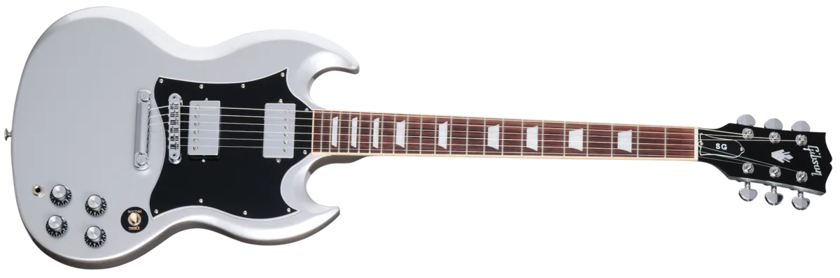 The Gibson SG Standard rocks the classic looks and features associated with the late 60s style SG™ models sought after by many. Now featured as part of the Custom Color Series, it adds exciting new color options to liven up any stage or guitar collection. features a rounded profile mahogany neck, bound rosewood fingerboard, long tenon 19th fret neck joint, and a solid mahogany body that provides the backbone for singing sustain. The 490R and 490T Alnico 2 pickups provide the power to drive. A black, 5-ply, full-face pickguard set this SG Standard apart from others... a truly versatile classic.
