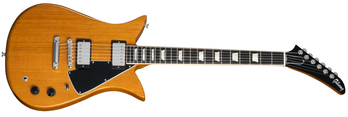 Designed by then Gibson president Theodore "Ted" McCarty and only previously a available as a limited edition Custom Shop model, the Gibson Theodore Standard is based on drawings and notes created by Ted McCarty in 1957. Its features include a mahogany body, scimitar headstock with Grover® Mini Rotomatic® tuners, and double Florentine cutaways that provide unimpeded access to all 22 frets on the rosewood-capped, Slim Taper ™ mahogany neck. The balanced construction is exceptionally comfortable, and the powerful 57 Classic ™ and 57 Classic Plus humbucker™ pickups produce effortless sustain and a rich diversity of tones. It is available in Antique Natural, Vintage Cherry, and Ebony. A hardshell case is also included.
