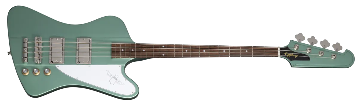 What do you think of first when someone mentions a Thunderbird ™ Bass? The distinctive shape that legendary automotive designer Ray Dietrich created? The sustain-enhancing nine-ply neck-through-body construction? The low-end punch from the two powerful bass humbucker™ pickups? Classic eye-catching, auto-inspired custom colors? In honor of the 60th anniversary of the groundbreaking Gibson Thunderbird, Epiphone is proud to introduce the Thunderbird '64. Inspired by the vintage Gibson T-Bird basses of that era, the new Thunderbird '64 retains all of the classic elements that made the originals iconic, from the nine-ply mahogany and walnut neck-through-body construction right down to the instantly-recognizable hot-stamped Thunderbird logo on the three-ply pickguard.