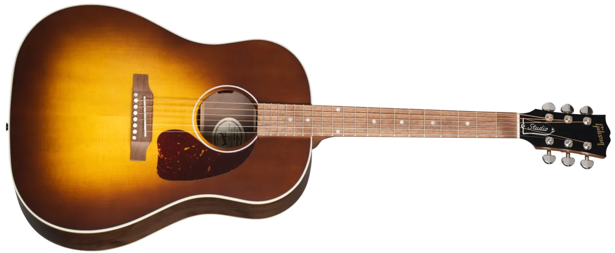 Turn heads with the J-45™ Studio Walnut. Hand-built using solid walnut back and sides and a solid Sitka spruce top, this updated J-45 Studio features a traditional body a depth for warm, rich tone. The Advanced Response profile utile neck ensures smooth, easy playability. Available in Satin Natural and Satin Walnut Burst finishes (including a left-handed model), the J-45 Studio Walnut has an L.R. Baggs™ Element Bronze active under-saddle piezo pickup for studio-quality plug-and-play anywhere. Packaged in an included hardshell case for portability, this J-45 Studio Walnut is ready for the studio and the stage.