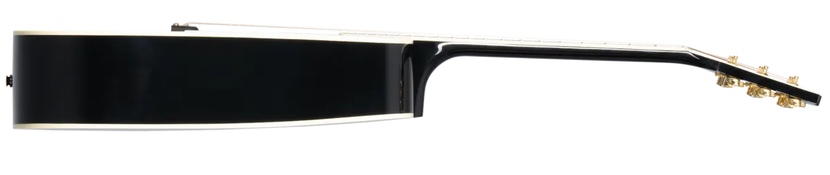 cosmetics, including an Ebony nitrocellulose lacquer finish, multi-ply binding on the top and back, a Les Paul-style peghead with a Custom split diamond inlay in mother of pearl, a bound ebony fretboard with mother of pearl Custom Block inlays, and gold Grover® Rotomatic® tuners. It comes equipped with L.R. Baggs™ Session VTC electronics and a hardshell case