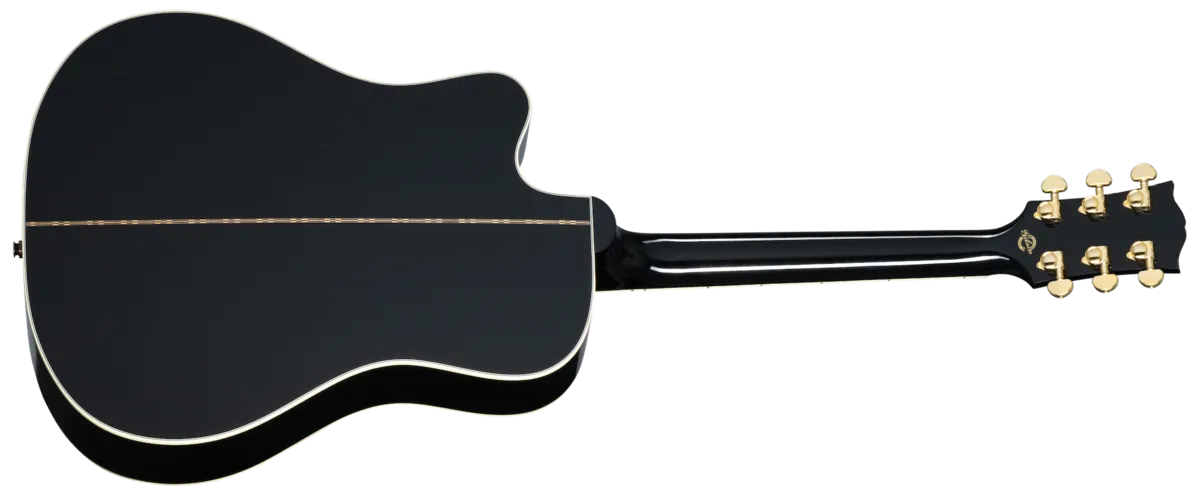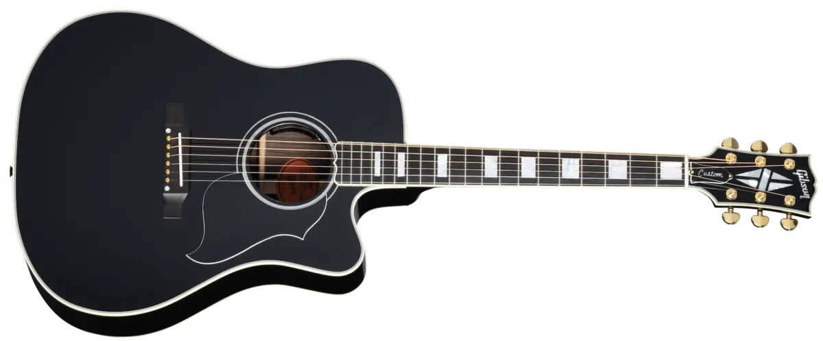 Whether you're writing a new song or taking it to the stage, the Songwriter EC Custom is an ideal musical partner. First introduced in 2003, the Songwriter combines Gibson's time-honored bracing patterns of the 1930s with our original modern dreadnought shape, providing outstanding tonal quality. The solid rosewood back and sides, paired with the solid Sitka spruce top, delivers a full, rich, and balanced tone. The cutaway body ensures excellent access to the upper frets on the comfortable, ebony fretboard-equipped round profile mahogany neck. This version of the Songwriter gets the Custom treatment, with Les Paul™ Custom-inspired cosmetics, including an Ebony nitrocellulose lacquer finish, multi-ply binding on the top and back, a Les Paul-style peghead with a Custom split diamond inlay in mother of pearl, a bound ebony fretboard with mother of pearl Custom Block inlays, and gold Grover® Rotomatic® tuners. It comes equipped with L.R. Bagg Session VTC electronics and a hardshell case.
