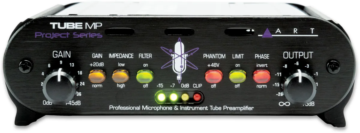 The Tube MP Project Series is a professional quality audio interface that lets you connect microphone, instrument, and line level signals to a mixer or other audio input. This hybrid design is the latest in a long line of ART tube preamps. We took our legendary Tube MP series and updated every aspect of the design, inside and out, while still maintaining a compact, reliable, and cost effective product. From the new all-aluminum stackable chassis to the precision LED level metering circuitry, we have improved virtually every aspect of our already successful Tube MP series. With up to 70dB of clean musical gain and high output signal drive capability the cold digital world will melt with your mixes! Charge up your creativity with the Tube MP Project Series!
