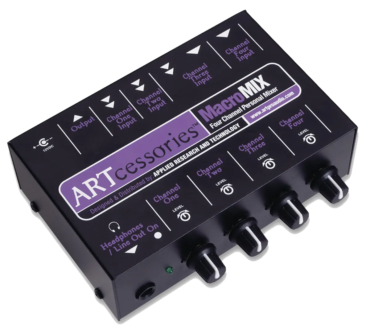 Solution: Insert a ProMIX between the mics and the mixer. Each mic channel on the ProMIX has both phantom power and low-frequency cut selectable via DIP switches plus a level control. The balanced XLR line output can be connected to a mic input on the mixer and headphones or a powered monitor can be connected to the Phone/Aux output. And if AC power is not available, the ProMIX runs on batteries as well.