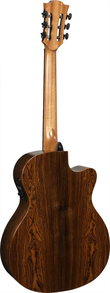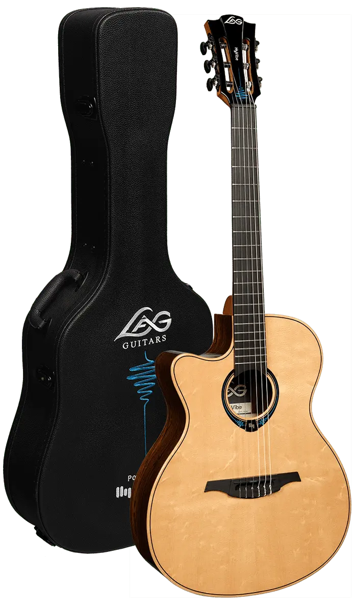 The Lâg THV30DCE signifies a blend of artistry and innovation, featuring a Solid Engelmann Bearclaw Spruce top and figured Mexican Rosewood back and sides, hand-selected by Lâg luthiers. With its glossy finish, dreadnought cutaway shape, and revolutionary HyVibe system, this guitar offers a sound and look that's unparalleled. It includes a premium moulded hard case, ensuring your investment is protected.
