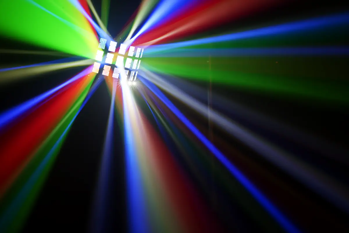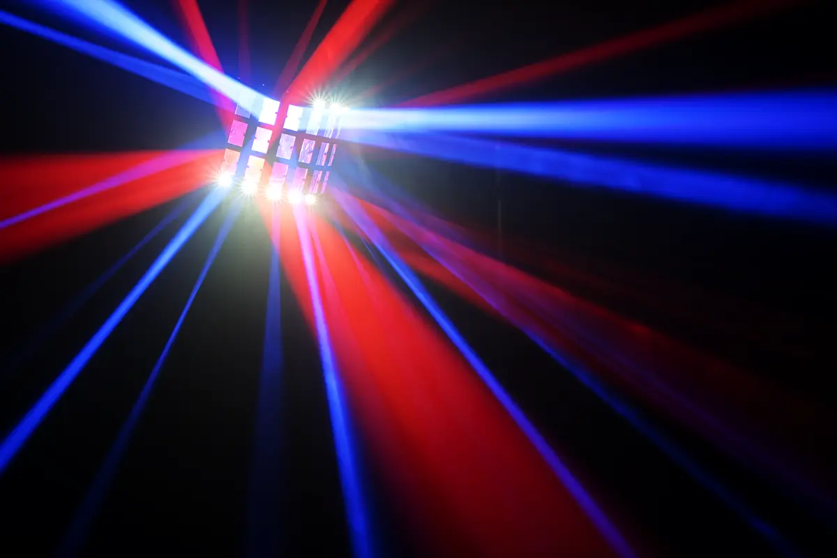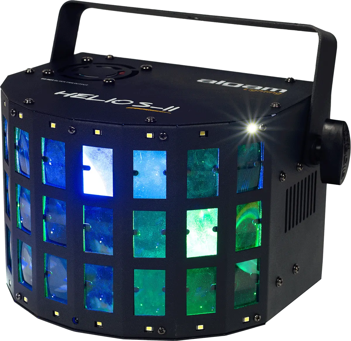 The Derby effect is quite simply a must-have for any festive event, party or club where atmosphere is paramount. With its moving beams of light filling large spaces thanks to the many patterns it generates and its built-in strobe, the Derby is one of the most popular lighting effects. The Helios II is no exception to the rule, with its 4 RGBW LEDs of 3W each and 16 white LEDs providing the strobe effect, driven by a motor generating bright moving beams through the 48 lenses thanks to the many scenarios available.