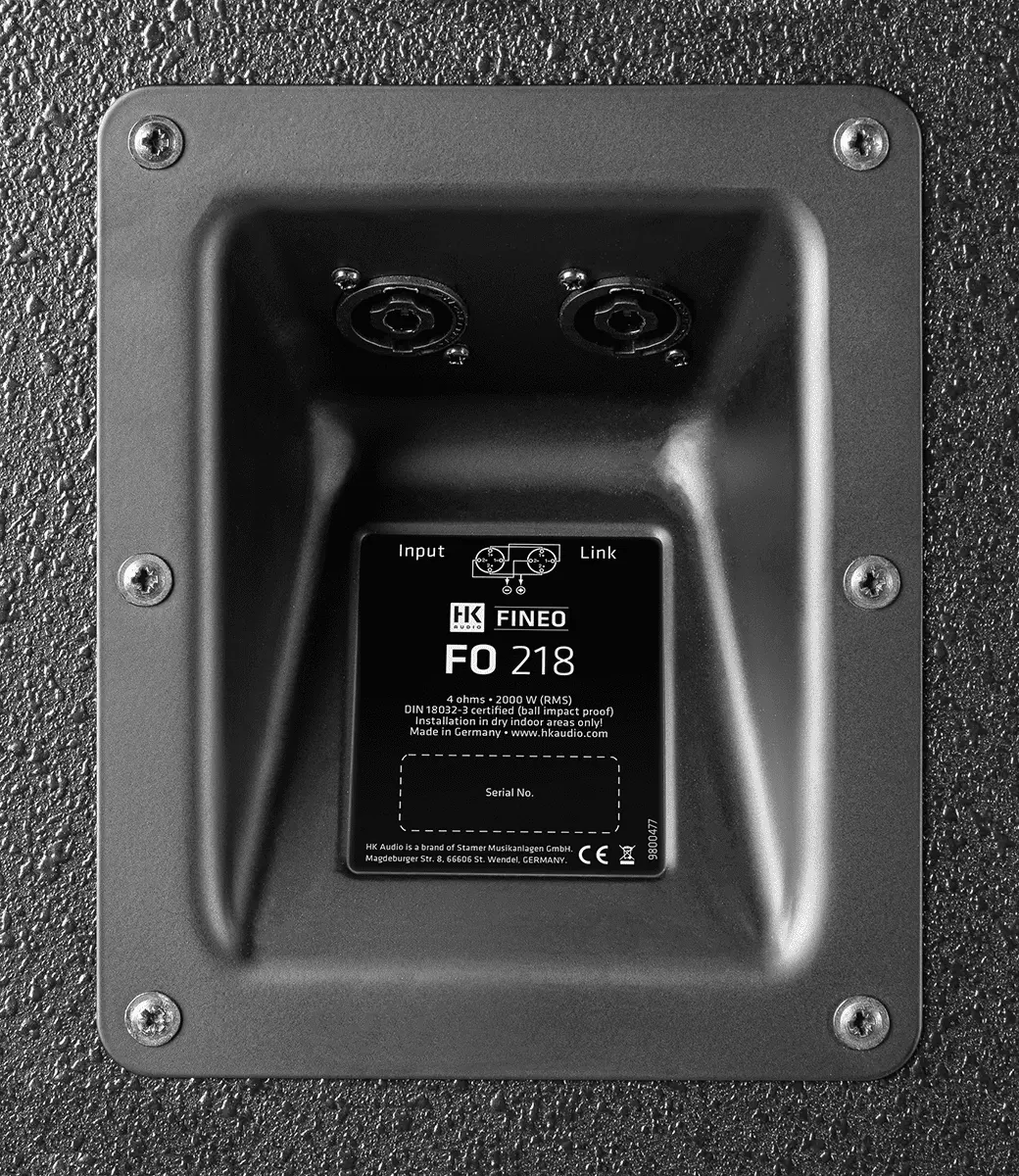 Deeper, louder, stronger. With its two 18" woofers with 3" voice coils, the FO S218 is the most powerful subwoofer in the series and offers the deepest frequency response. The ideal complement for the F012 and FO15 in stereo, 2.1 or surround systems. The subwoofer can be placed upright or on its side and offers a milled cable duct to the bottom, left and right for cable routing close to the wall. The front is protected by a full-surface grille, which is supported by solid reinforcements on the inside. This makes the FO S218 suitable not only for use in sports venues (for which a ball-impact resistance certificate in line with DIN 18032-3 is provided), but also for "wild" club and concert environments.