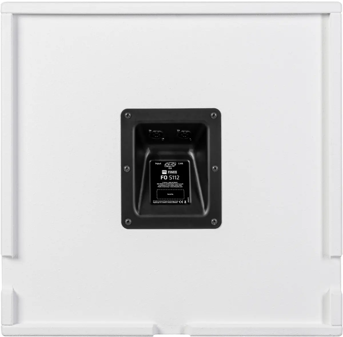 Very compact subwoofer with 12" woofer, 2.5" voice coil and 50 Hz tuning frequency. Ideal low-end support with powerful bass and high sound pressure as a system subwoofer or surround LFE for installations with compact speakers like the FO5. Easy to integrate in environments with limited space. The cable feed-through on the rear, with cut-outs to the left, right or bottom, allows cables to be routed close to the wall, meaning the subwoofer can be placed against the wall without gaps. A secondary grille protects the bass reflex port from accidental or deliberate insertion of foreign objects. A ball-impact resistance certificate in line with DIN 18032-3 is provided for installations in sports facilities.