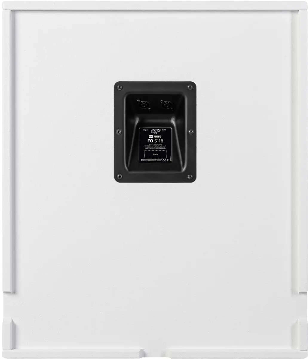 Particularly powerful and high-impact subwoofer with 18" woofer and 3" voice coil. Voluminous bass even for larger rooms and when the sound requires more noticeable boost in the lowest frequency ranges. The optimal complement for larger systems with FO10, FO12 and FO15 loudspeakers. Despite the large membrane area, the FO 5118 is compact and easy to integrate into various ambiences. Cable routing close to the wall is facilitated by the milled openings on the back. A secondary grille protects the bass reflex port trom accidental or deliberate insertion of foreign objects. A ball-impact resistance certificate in line with DIN 18032-3 is provided for installations in sports facilities.