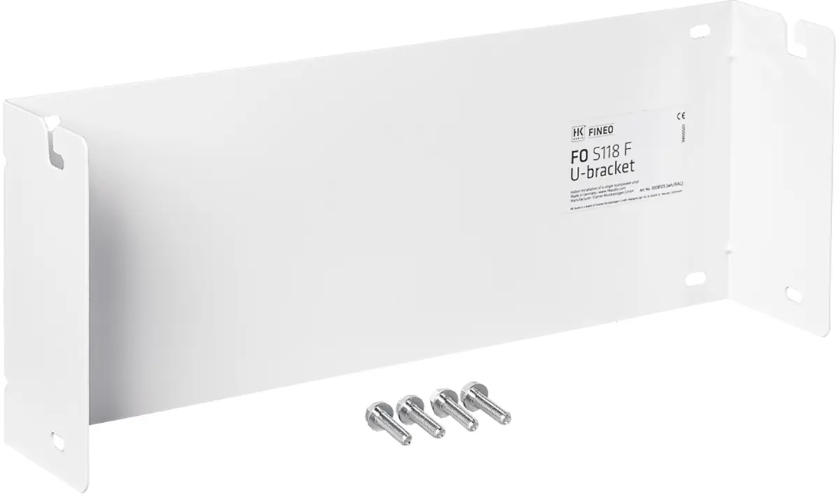 With the FO S118 F U bracket, the flyable FO S118 F subwoofer can be mounted to a ceiling. The FO S118 F can also be tilted at a slight downward angle to allow foreign objects or liquids that may enter the bass reflex port to easily fall out or drain away. The FO S118 FU-bracket is made of high-strength steel and covered with a powder coating. Just like the speaker, the U-bracket also has a ball impact resistance certificate in line with DIN 18032-3. Test statistics for operation over an audience can be provided it required.