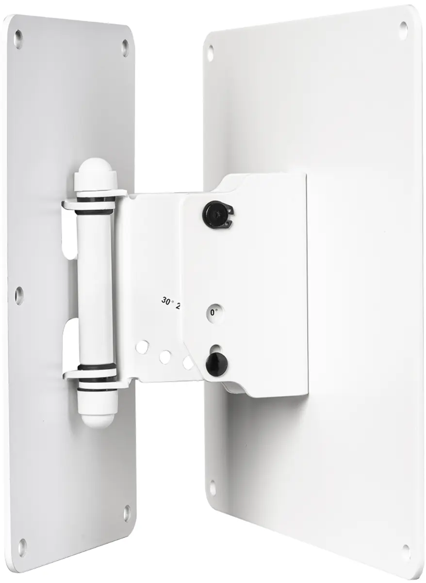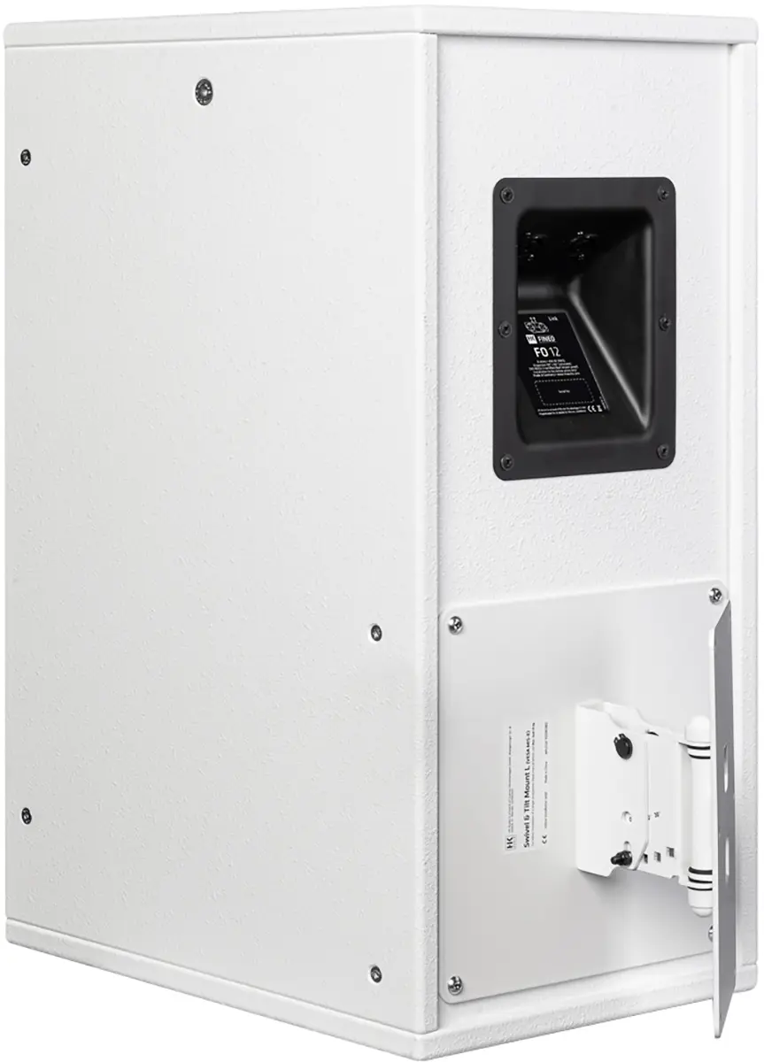 The swivel and tilt wall bracket L is used to mount a FO12 or FO15 speaker on a wall. The bracket allows the speaker to be rotated continuously horizontally and tilted vertically in 10° increments from 0° to 30°. The swivel and tilt wall mount L is attached via the VESA hole pattern (MIS-E) on the back of the cabinet.