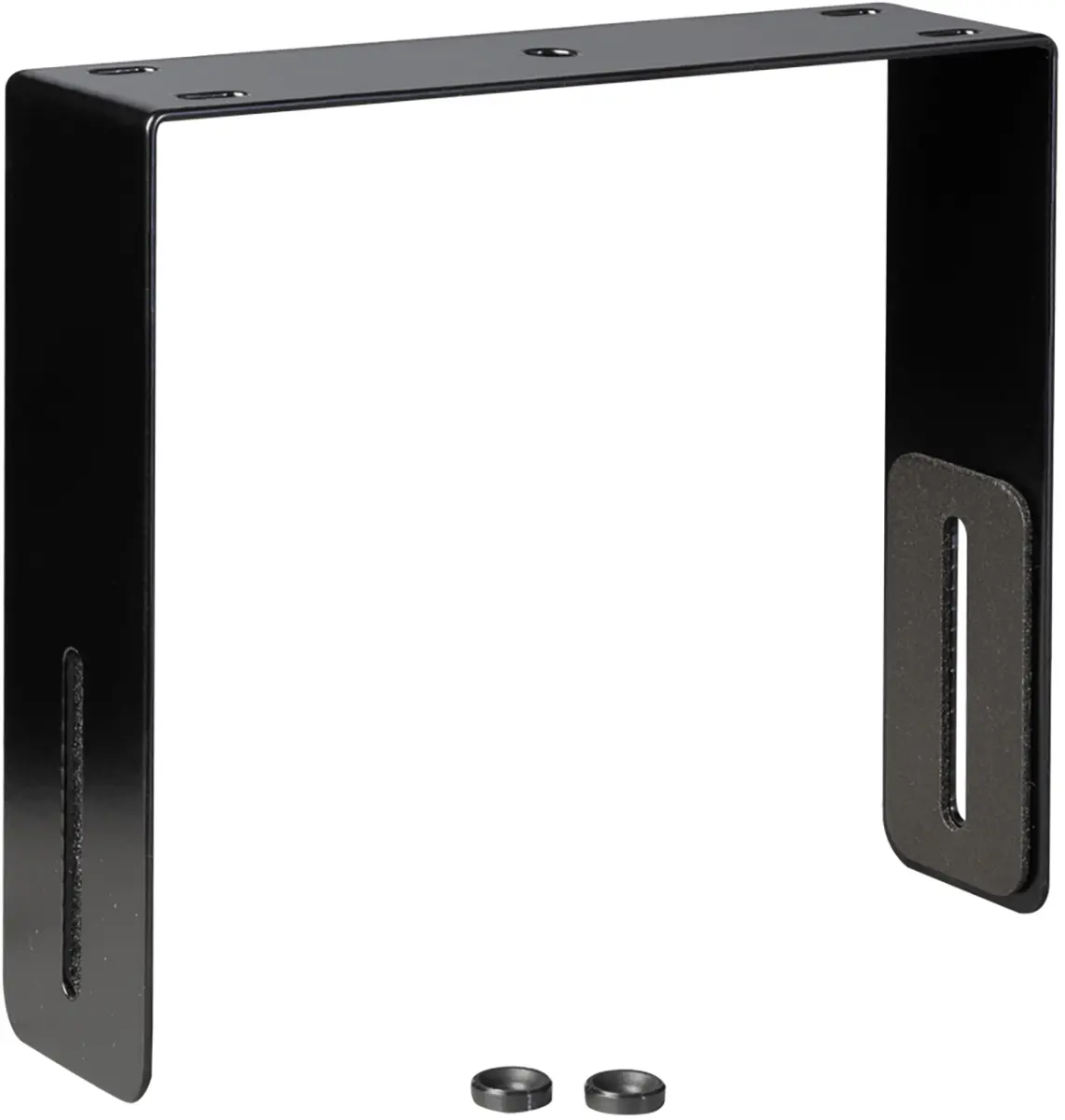 The FO 5 U-bracket can be used to mount an FO5 speaker on a ceiling or wall. The bracket is easily installed using two screws on the sides of the cabinet, with which the desired tilt angle can also be continuously adjusted. The central 10 mm hole on the U-bracket allows mounting on microphone or table stands, which is particularly practical for nearfill or monitoring applications. The FO 5 U-bracket is made of high-strength steel and covered with a powder coating. Just like the speaker, the U-bracket also has a ball-impact resistance certificate in line with DIN18032-3.
