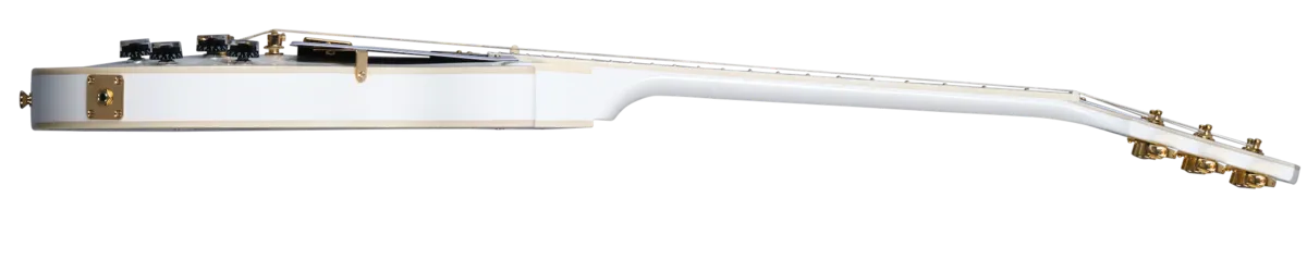 As part of the ongoing collaboration with Gibson TM Custom, Epiphone is proud to introduce the flagship Les Paul™ Custom to the Inspired by Gibson Custom lineup. Replete with all of the classy "tuxedo" appointments that the model is known for, this beautiful guitar has a one-piece mahogany neck with a 50s Rounded C profile, an ebony fretboard, and mother-of-pearl block fretboard inlays. T here are also mother-of-pearl split diamond and Epiphone logo headstock inlays on the Gibson-style "open book" headstock. Gold hardware, including Grover® Rotomatic® 18:1 gear ratio tuners, gives it even more visual appeal. The solid mahogany body has a maple cap for a touch of added sonic bite, while the Gibson USA 490R and 498T pickups provide tonal sophistication and plenty of muscle to back up all the beauty. They're hand-wired to CTS® potentiometers, a Switchcraft® output jack and pickup select switch, and Mallory ™M capacitors. An Inspired by Gibson Custom double diamond logo is on the back of the headstock, and a black hardshell case with the Inspired by Gibson Custom logo and a goldenrod interior is also included.